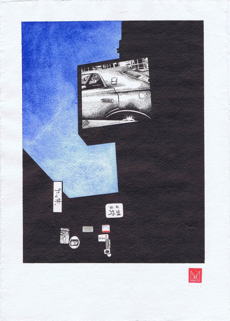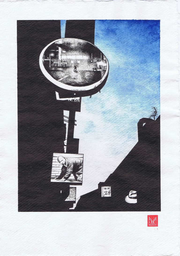 Dessiner au stylo bille est pour moi une forme de méditation, un état d’absorption totale où chaque trait se construit patiemment, jusqu’à faire émerger l’image. Le temps s’efface, seul compte le mouvement du stylo sur le papier, précis et instinctif à la fois.