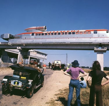 L’autre héritage, plus discret mais tout aussi réel, se trouve dans les projets de transport qui ont émergé après lui. Si le coussin d’air a finalement été abandonné en France, plusieurs programmes à l’étranger se sont appuyés sur des principes similaires : le Transrapid allemand (train à sustentation magnétique), le HSST japonais (maglev urbain), ou encore les monorails rapides développés à Tokyo dans les années 80. Même le premier Shinkansen, pourtant basé sur des rails classiques, partage avec l’Aérotrain une vision commune : vitesse élevée, aérodynamisme poussé, et volonté de réinventer l’expérience du voyage. Plus récemment, certains concepts d’Hyperloop — capsules guidées, friction minimale, voie dédiée — reprennent des intuitions de Jean Bertin et de son équipe. L’Aérotrain n’a peut-être pas survécu, mais ses idées ont nourri, directement ou indirectement, plusieurs des transports les plus innovants du siècle.