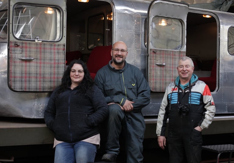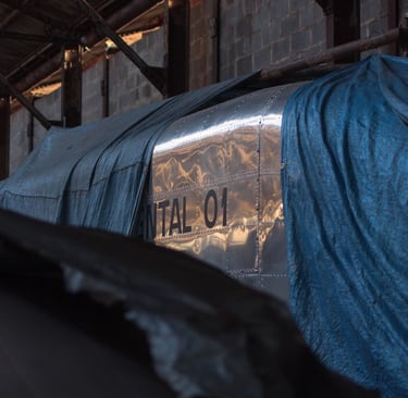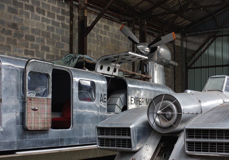 Lors de nos deux premières visites, les engins sont bâchés et nous apercevons seulement quelques détails. Déception mais excitation grandissante de découvrir le reste. Nous arrivons à entrer en contact avec les membres de l’association Jean Bertin et prenons rendez-vous : Le expérimental 01 (restauré et désormais classé comme monument historique depuis 2023) et le expérimental 02 (plus avancé que le premier, est celui qui a battu le record de vitesse des 430km/h) vont être débâchés spécialement pour nous!