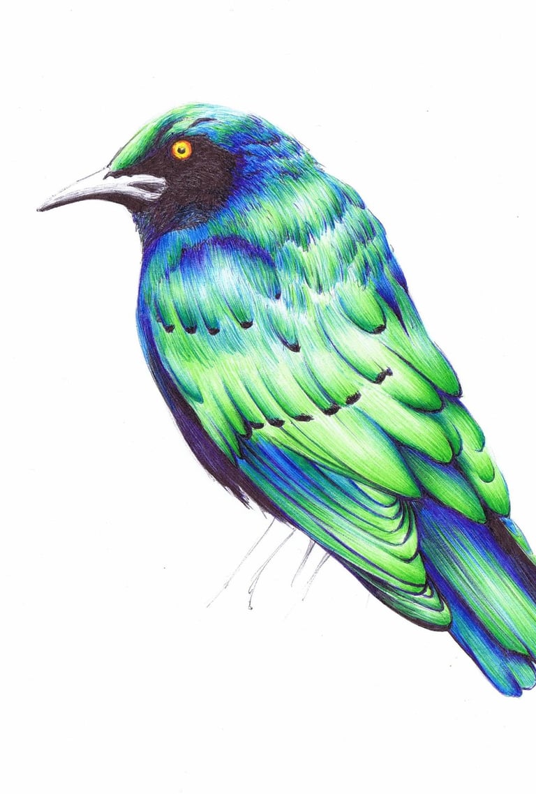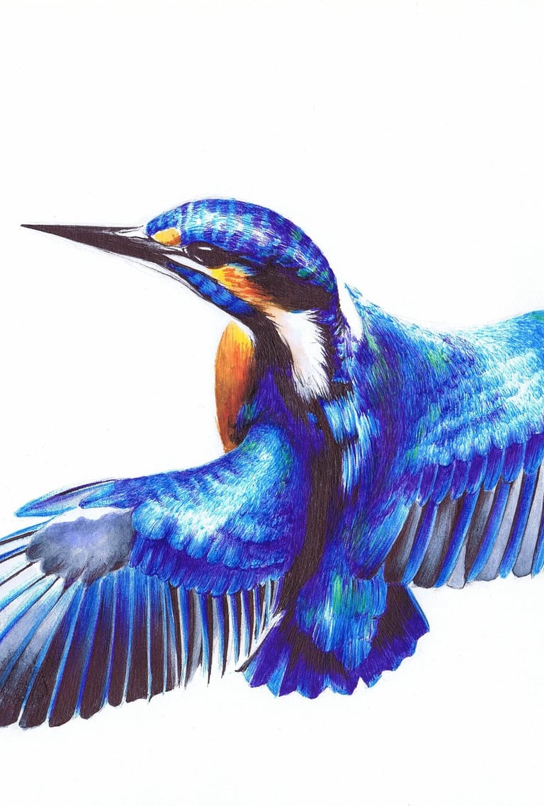 Certains de mes dessins au stylo bille se veulent très réalistes, grâce à l'utilisation des différentes couleurs de stylo bille existantes. Chaque trait est soigneusement pensé pour capturer les textures et la lumière et ainsi donner vie aux sujets représentés. D'un côté, des créations en noir et blanc, poétiques et minimalistes, de l'autre, des couleurs intenses aux dégradés subtiles.