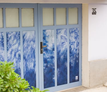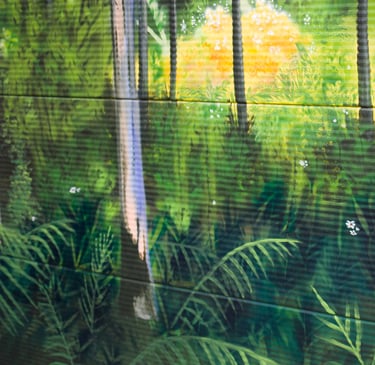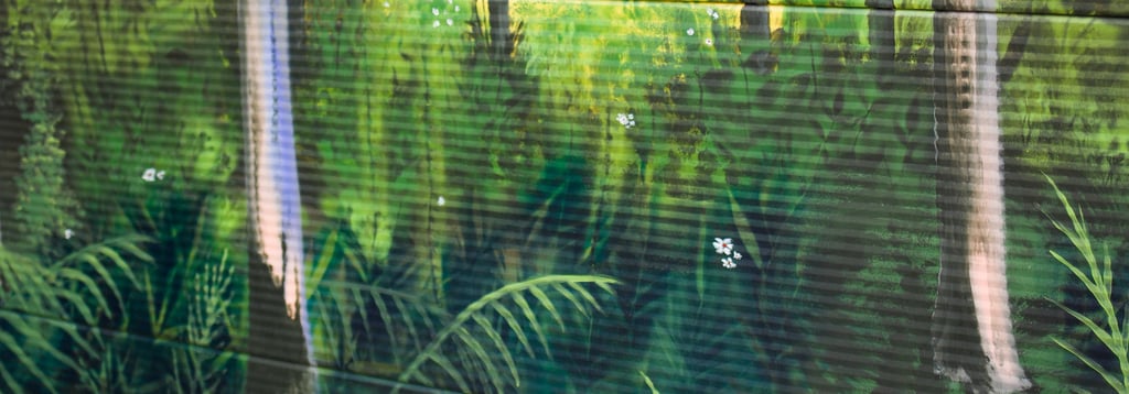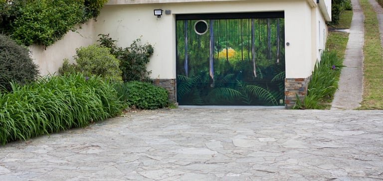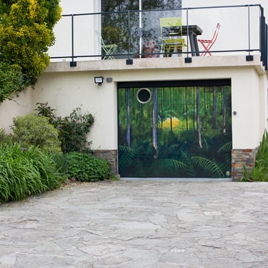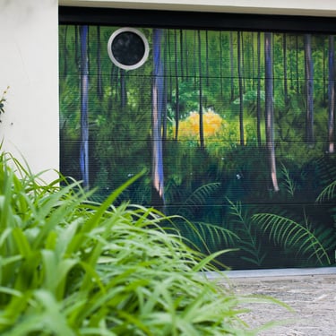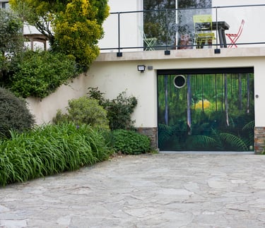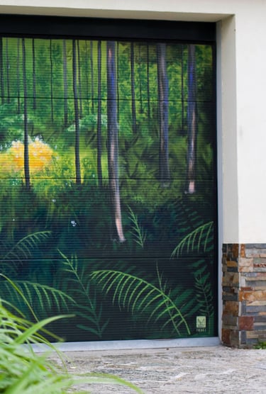 TROMPE L'OEIL SUR UNE PORTE DE GARAGE INSPIRE D'UNE FORÊT TROPICALE