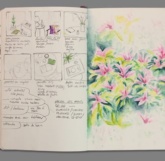 Artiste pluridisciplinaire et diplômée des métiers d’art, je me suis d’abord exprimée à travers la création d’objets en métal et d’accessoires illustrés. Mon travail s’est ensuite enrichi au fil des années, intégrant progressivement l'aquarelle, la peinture et la photographie. Aujourd’hui, mon approche mêle ces différents mediums, sans oublier les carnet de croquis, qui jouent un rôle essentiel dans ma démarche artistique.