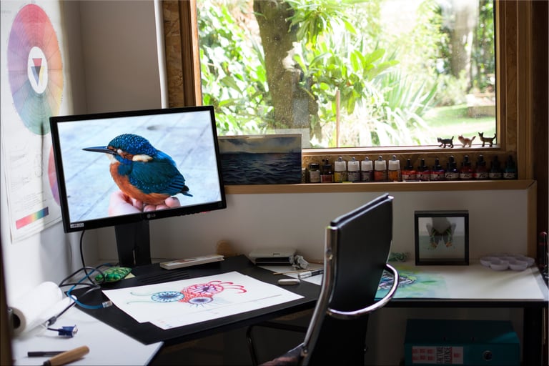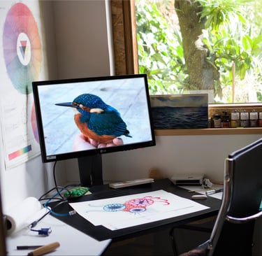 À travers mon studio de création, je conçois des œuvres uniques et développe des projets variés : peintures originales, illustrations, éditions d'objets, carnets d’inspiration et travaux photographiques. Chaque projet est pensé avec une attention particulière au détail, à la narration et au processus de fabrication. Que ce soit pour des collections personnelles, des collaborations artistiques ou des commandes spécifiques, mon objectif est d’offrir un univers visuel unique.